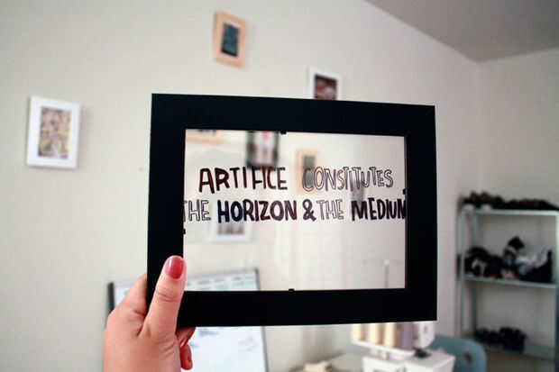 Cortar la transparencia, poner en el marco y tomar tantas fotos con él como usted por favor. O para asegurarse de que lo que estás a punto de tomar una foto realmente hace mirar bien con texto colocado en la parte superior. Puntos de bonificación para el uso de una réflex digital. Puntos extra para uso de una cámara de lomography y luego lo escaneo en su ordenador. Puntos increíblemente extra para usar una cámara polaroid para capturar su texto en la foto.