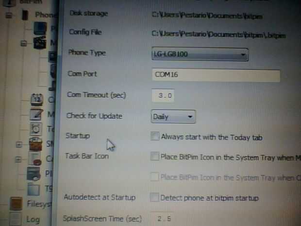Haga clic en la ficha servicios, espera que carga a continuación, tome nota del puerto COM utilizado por mina 'puerto de serie Bluetooth Serial port (SPP)' COM16. abrir BitPim tratará de encontrar el teléfono, no detecta la LG490 así ir el menú Editar y ajustes.