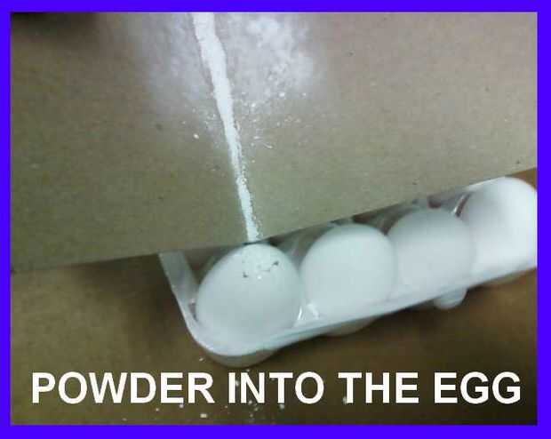 Vierta el polvo de la aspirina en el agujero en el huevo.