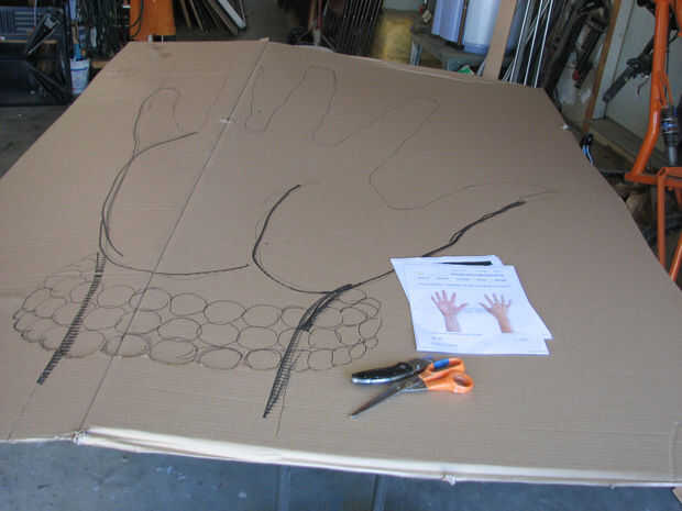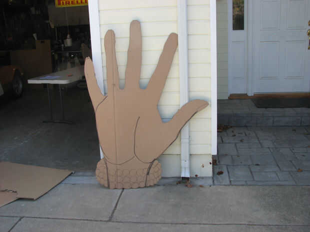 Una vez que encuentre una foto de una mano que trabajará para su juego, ampliar en un pedazo grande de cartón. Un cortador de caja hará corte hacia fuera una tarea fácil. Caliente pegar piezas adicionales de cartón para agregar una resistencia extra para no doblan los dedos.