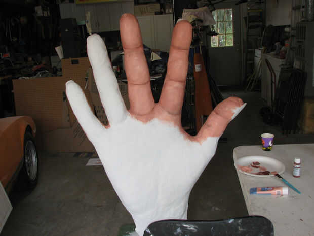 Toda la mano con pintura de Drylok de lanilla. Drylok ayudará a hacer más resistente al agua. Pintura de la mano con acrílicos en tonos de piel.