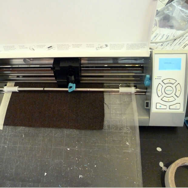 Desde que estaba usando una tela cruzada de peso medio y tenía el papel todavía en la tela, me puse el Cameo 9 y velocidad 2.