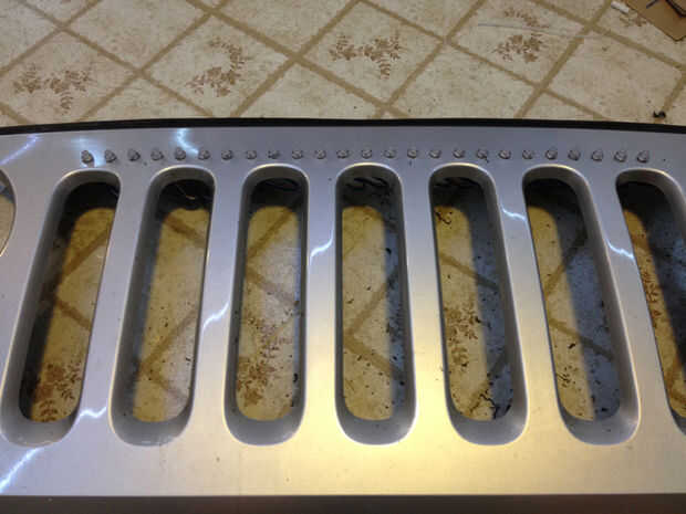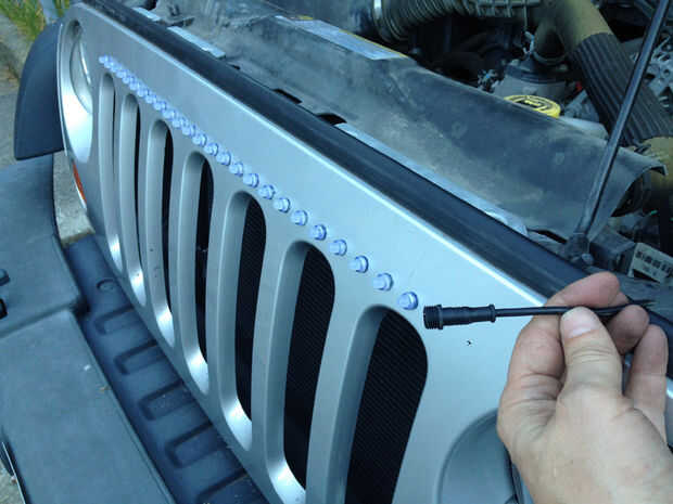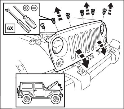 Vuelva a instalar el panel frontal en el Jeep y vuelva a insertar todos lo pop-pins, asegurándose de que el conector para el filamento era accesible.