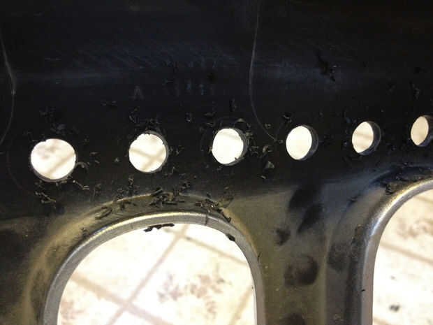 Con el 7/16 broca, perforado por los agujeros del motor de arranque.