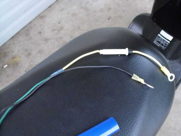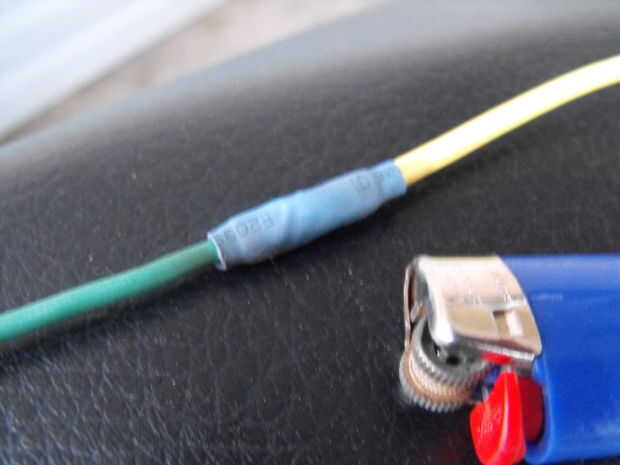 empalmar el cable positivo y portafusibles. Cinta y encogimiento. Dejar un extremo pelado y pelado y en el otro extremo engarzado en una conexión rápida. (¿Por qué deje un extremo que pedir?? Porque su caja de fusibles de ruckus cubre el terminal positivo de la batería bastante bien así que estaremos creativos cuando nos conectamos a él.)