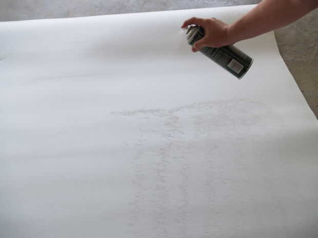 Luego rociaron la tabla primero y la espuma en segundo lugar, ambos con una cantidad abundante de adhesivo aerosol.
