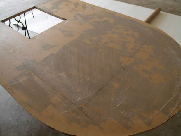 Después del contacto hecho mediano, entonces establecido mi final lentamente para cubrir una mitad de la tabla y se movió rápidamente para tomar el rollo de cartón grandes que la espuma llegó el y usarlo como rodillo para allanar la espuma. Después había hecho esto a un extremo, que rodé el cartón hacia el otro extremo como mi cohorte bajó lentamente su final de la espuma.