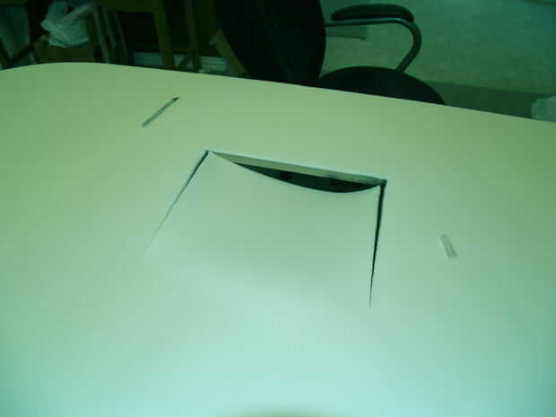 esto le mostrará cómo cubrir una vieja mesa con láminas de cobre.  Utilicé un freno de metal de hoja (en.wikipedia.org/wiki/Brake_%28sheet_metal_bending%29) y mientras lo ayuda a hacer las esquinas agradables no es necesario.  Estas instrucciones asu