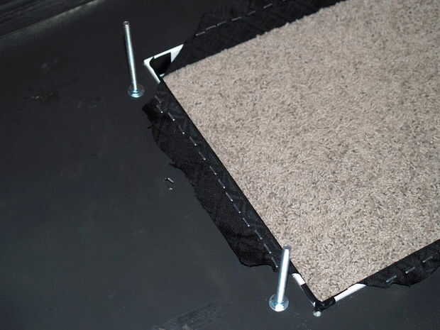 Antes de tirar de la tela hacia abajo y alrededor de los bordes, siguió adelante y poner alguna cinta aislante en las esquinas porque el borde es blanco, mientras todo lo demás es oscuro en color. No queríamos un poco de blanco visible donde la tela se divide.