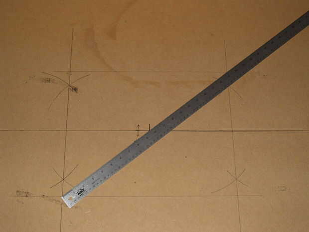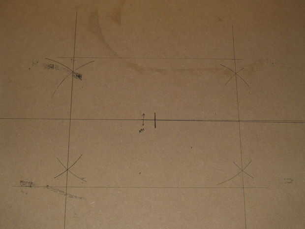6.) dibujar una línea entre las dos intersecciones de los arcos, creando una línea perfectamente perpendicular a utilizar como el borde de la abertura.