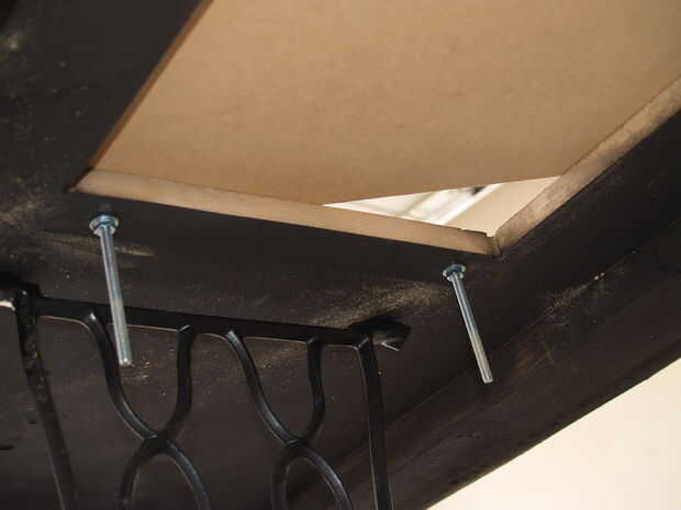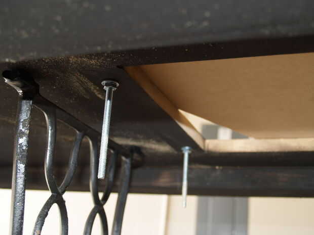A continuación, con una arandela y una tuerca, nos apretó los tornillos hasta su posición permanente. Usando una tuerca y una arandela en el otro lado antes de monta la plataforma hará que los tornillos nunca intentan volver y a través de la superficie terminada de la tabla.
