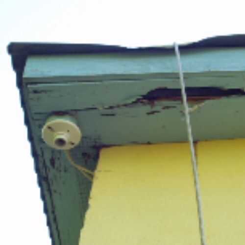La casa tenía un techo de madera y hierro corrugado. "Polillas", como las termitas microscópicas, había devorado la madera. Techos de cabina necesitan reemplazo.