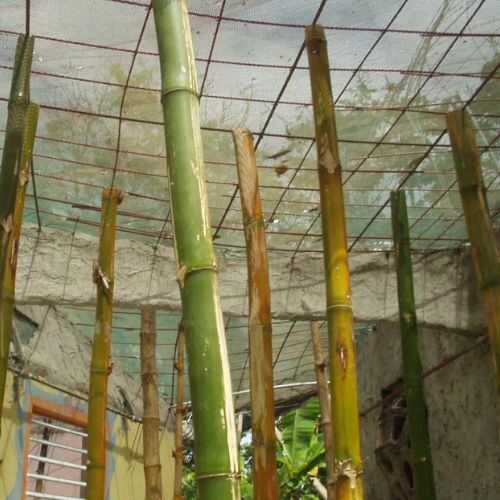 La manera de hacerlo es con cañas de bambú. Con el bambú en su lugar, se puede utilizar la parte superior del bambú como piedras. Es un poco complicado, balance-wise, pero se puede hacer.