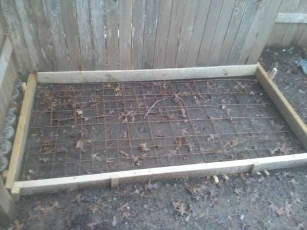 Finalmente, utilice un cortador de perno para cortar la malla de alambre para encajar dentro del marco. Coloque la malla de alambre apoyada en unas rocas que lo mantenga cerca de 1" por encima del suelo.