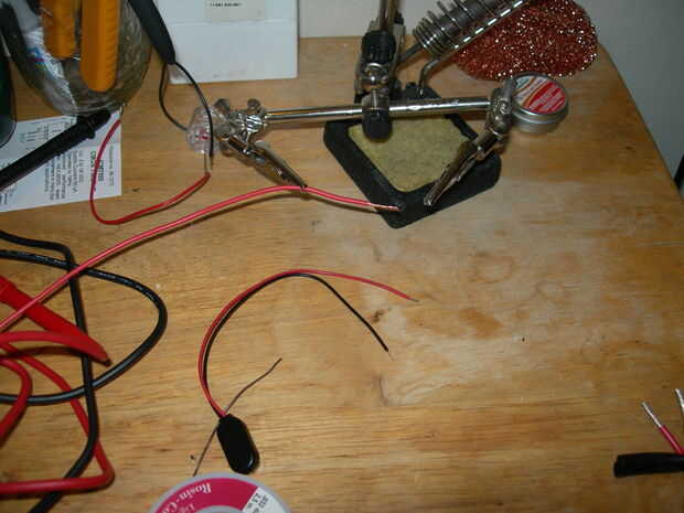 NO SOLDAR DIRECTAMENTE A LA BATERÍA! inventar algo a snap o clip en allí. Si peor viene a peor, uso cocodrilo clips. Si la batería tiene pestañas, utilice un conector ficha.