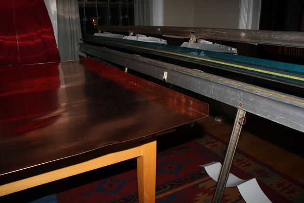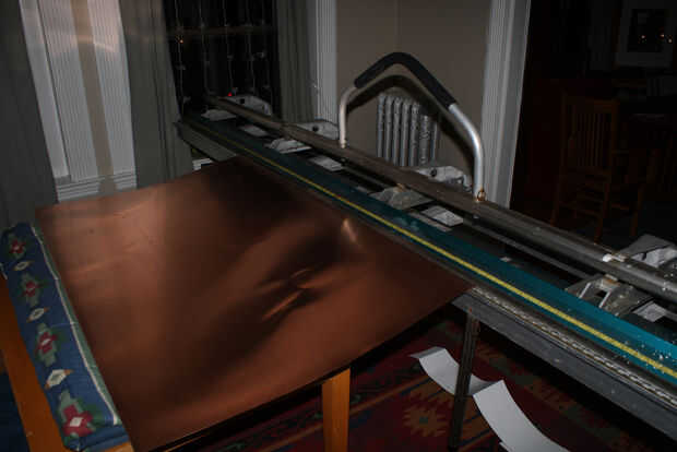 Poner el cobre en la mesa por lo que la curva es contra el borde. Haz debajo de la mesa y marque el cobre donde debe ir la siguiente curva. Poner el cobre en el freno y poner en la siguiente curva. Para esta segunda curva es importante tener cobre alineado correctamente. La mejor manera de hacerlo es marcar ambos extremos del cobre donde se doblará y asegúrese de que alinee con el freno.
