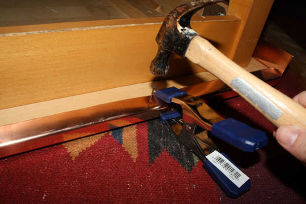 Utilice las tijeras para cortar un pequeño ángulo en el borde que no ha sido todavía, y luego doblar y los últimos bordes del martillo.