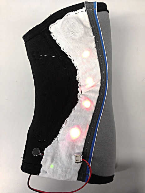 Mediante un pulsador, el usuario puede establecer el valor de su profundidad deseada. Cuando se presiona el botón, el valor actual de la curva se guarda en la Junta. Como el portador se mueve, se compara el valor actual de la curva al valor programado. Brillan de los LEDs rojo verde dependiendo de cómo de lejos o cerca, respectivamente, el usuario está en la posición de destino. El sistema parpadea en verde y vibra un motor al llegar a la profundidad deseada