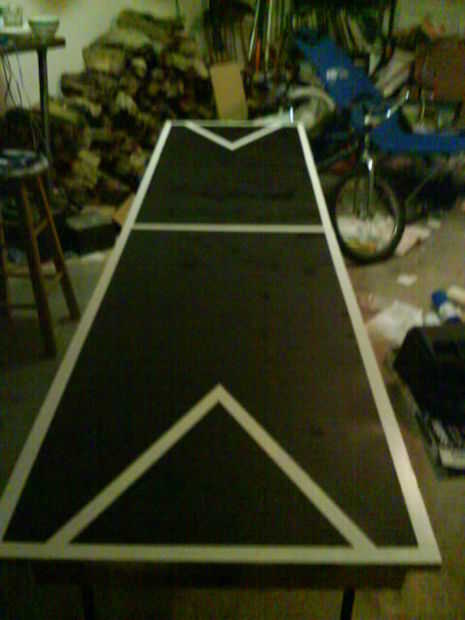 Ahora que es marcado hacia fuera cómo usted lo desea, comenzar pintando lo que desea. una vez que su hecho y seco, colóquese usted sellador de polietileno en dos capas (lo hace ok derramar cerveza sobre la mesa) y has hecho! acumular la taza en triángulo y divertirse, solo no seas estúpido. Y NO TOMES Y MANEJES!!!!!!