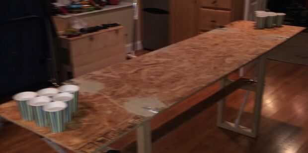 Cortar la madera contrachapada que desee para la tapa de tabla para el tamaño del interior de la cama. Corté mi así que había un excedente de 1 pulgada para hacer el montaje de las bisagras más fácil.