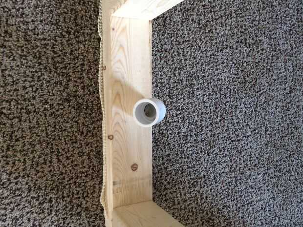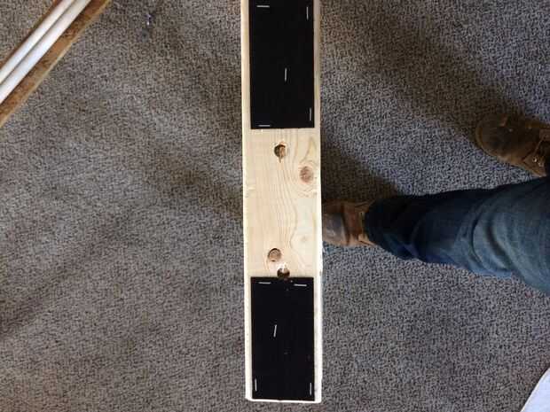 Para las piernas, encontrar el centro de la base y sujete la clavija de PVC 3/4" en lugar del 45 º PVC de 3/4" conector del enchufe, se utilizará para la abrazadera de soporte de la parte exterior de la tabla.