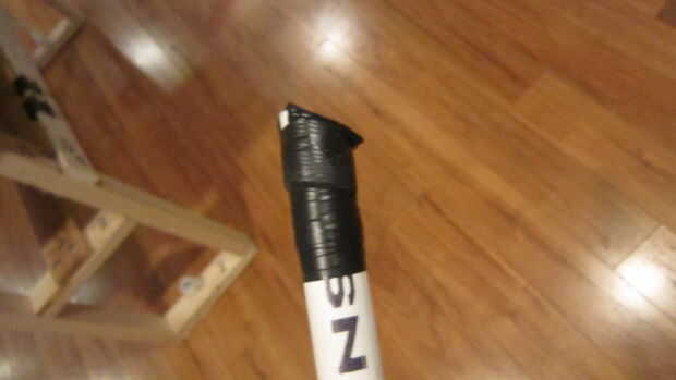 En la parte superior de las piernas donde descansa la mesa, aplique la cinta de Velcro, aplique presión para asegurar una aplicación adecuada. He añadido las grapas en las esquinas de la cinta de Velcro para mayor seguridad.