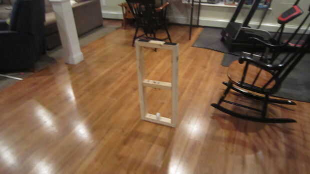 Las piernas que hice son 30" de altura y 13" de ancho. Cuando de pie son las patas de la mesa y cuando está a su lado son las patas de la cama. Las piernas tienen grapada a todas las partes excepto la parte superior donde la tabla se basa en la estera antideslizante. Esta estera de palo no ayuda a la mesa y la cama de resbalar y caer.