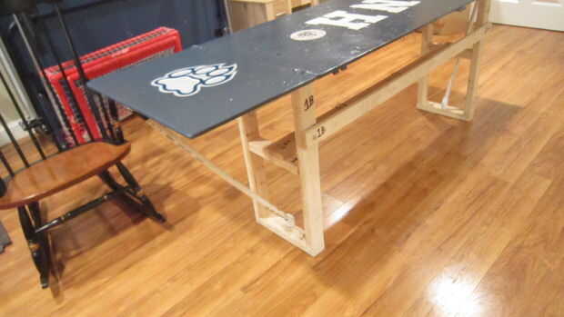 Coloque la mesa sobre las piernas y añadir Velcro a la parte inferior de la tabla para que coincida con el Velcro en las patas.