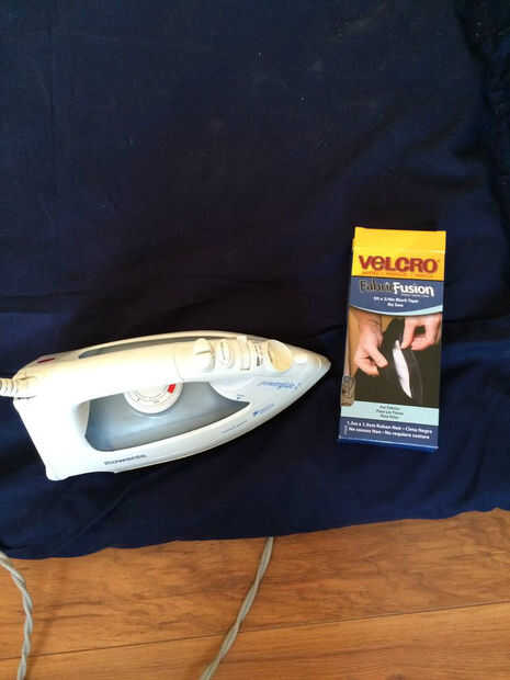 Usando un hierro y hierro tela Velcro cierre los extremos de las hojas.