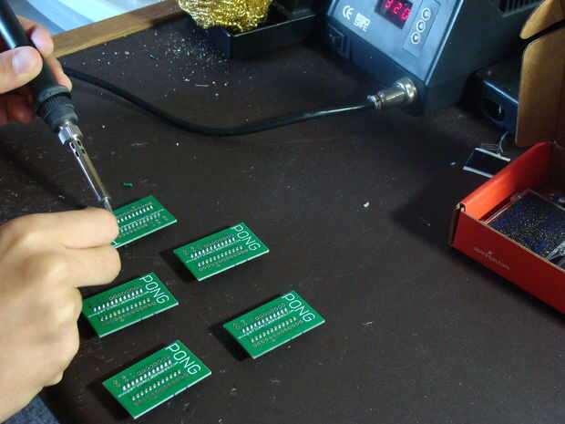 Opté por usar un IC de Maxim IC llama la MAX7219CNG. Esto permitirá que cada LED individual ser tratados en la matriz. Estos pueden ser comprados de Sparkfun Electronics . Aquí le damos la hoja de datos. Este IC se hizo para el control de una sola matriz de LED 8 x 8. Vamos a usar matrices de 6 por lo que este proyecto requiere 6 de estos ICs. Hay una buena biblioteca que se creó para estos que ayudarán en la programación de este proyecto. Este IC y la biblioteca se encarga de iluminar que LEDs que quiere luz para arriba sin preocuparse de los encendiendo y apagando rápidamente como expliqué. Esto nos permitirá crear y visualizar imágenes y preocuparse sobre el lado de pong de cosas y no sobre todos los detalles más finos de mostrar la imagen fácilmente.