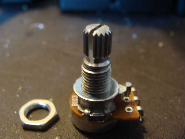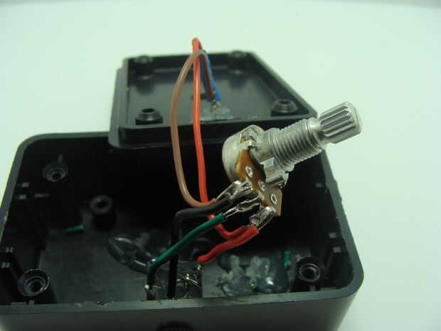 La siguiente cosa a hacer es el potenciómetro del perno en su lugar. Tornillos en el agujero en el centro de la parte superior de la caja del proyecto que fue perforada.