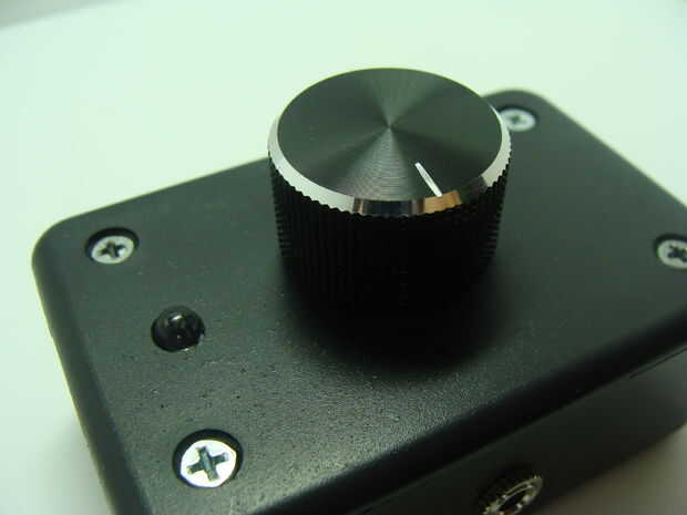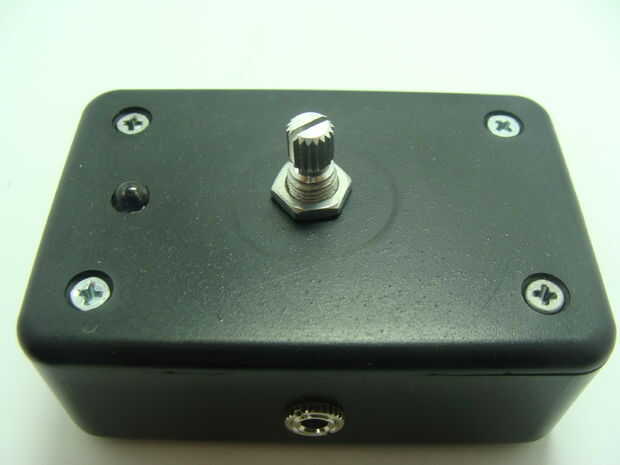 Si no ya tienes el perno el potenciómetro en la parte superior de la caja del proyecto. Atornillar los 4 tornillos de la caja del proyecto en asegurar la tapa. Por último, coloque la perilla en el potenciómetro para que la ranura de la perilla es perpendicular al frente de la caja cuando el potenciómetro esté centrado.