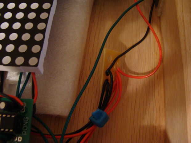 Ahora llega la hora de cablear las pocas conexiones de la pantalla a Arduino. El "Din" de eso tablero de arranque izquierdo superior de la pantalla obtiene conectado al pin 12 de Arduino. Los pasadores de reloj Haz conectados al pin 11 y los pasadores de carga Haz conectados al pin 10.