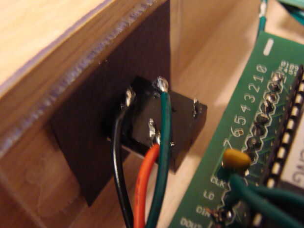 Ahora puede comenzar el cableado final. Necesita cablear los conectores de audio del mismo modo que fueron conectados en el controlador. Conexión de 5V, GND y una entrada analógica. Alambré el lado izquierdo a 0 analógico y la derecha a 1 analógico de Arduino.