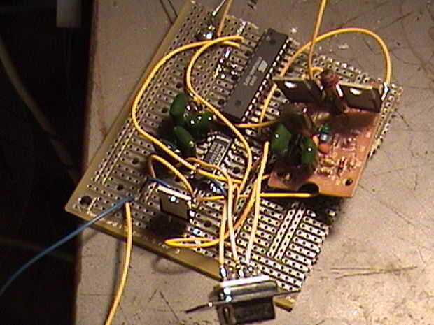 Por lo tanto, ahora quiere construir el circuito desde el esquema a continuación. Los transistores en la parte inferior son los que a soldado en el transmisor. Y oh sí, esto es importante! No te olvides de poner el microcontrolador en el zócalo del IC. De lo contrario estarás muy triste cuando desea programar. Por ahora, no te preocupes acerca de dónde proviene el VCC para el 7805 (se trata de 9V que utilizamos para alimentar el transmisor).