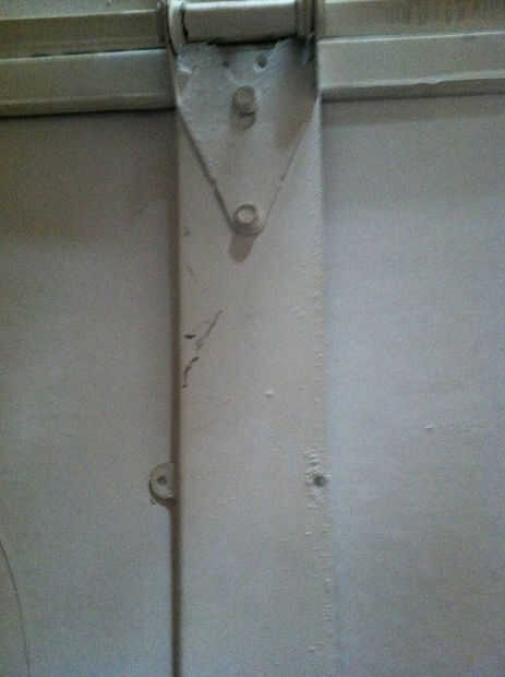 Marcar si se necesita determinar una exacta x y la coordenada y. Aquí utilizo una puerta de garaje - es parte de nuestro espacio de arte industrial y con frecuencia tienen artistas que quieren colgar arte en esta puerta. Sin embargo, un clavo no es apropiado, y también queremos algo que no hace daño si alguien apoya en él.