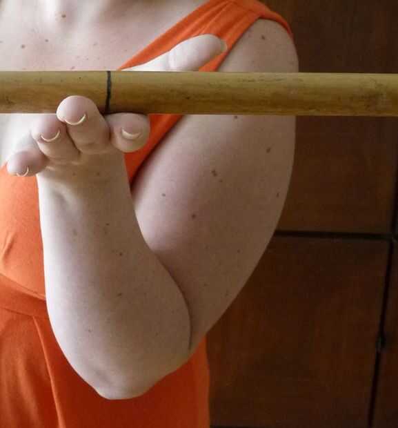 Buscar su punto de equilibrio de equilibrio personal en su dedo. Esta marca con un rotulador.
