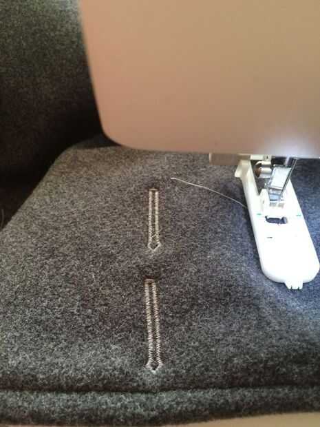 Elija el ajuste de ojal y ve por ella! El ojal frontal es como estándar. Para las 'mangas' podría ser más estético que los ojales sentarse verticalmente para ayudar a mejorar la ilusión de una costura de manga larga. Coloqué aproximadamente media pulgada entre los ojales de la manga, coser el uno más cercano al borde primero.