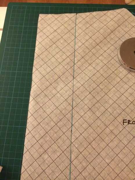Hay un teensy poco más seguimiento a dar la cara, luego la elaboración del patrón se hace! Lo que tienes que hacer es dibujar una línea inclinada desde el borde superior de la pieza pieza delantera a la parte inferior. Coloque el otro trozo de papel encima del patrón y del seguimiento a lo largo de la línea angulosa y la parte delantera y los bordes superiores. Marque con una muesca en el frente, en la parte superior del patrón donde comienza la línea azul (el borde de la pieza original).
