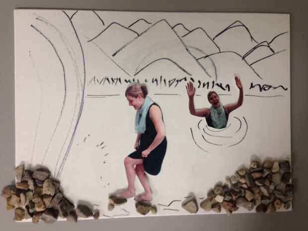 Coloque el corte figura salidas en tu lienzo y ligeramente esbozar en su entorno. (Nota: esto ha bosquejado con tinta oscura por lo que se puede ver. Mantenga su bosquejo ligero por lo que es fácil de pintar sobre el.) Si va a agregar en la textura, colocar en la obra de arte para hacerse una idea de cómo se verá. (No pegar nada a la lona, sin embargo!).