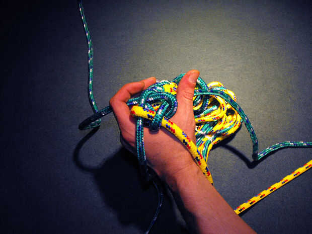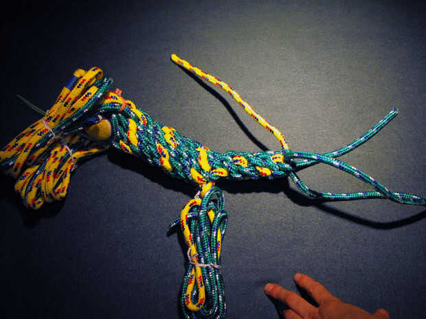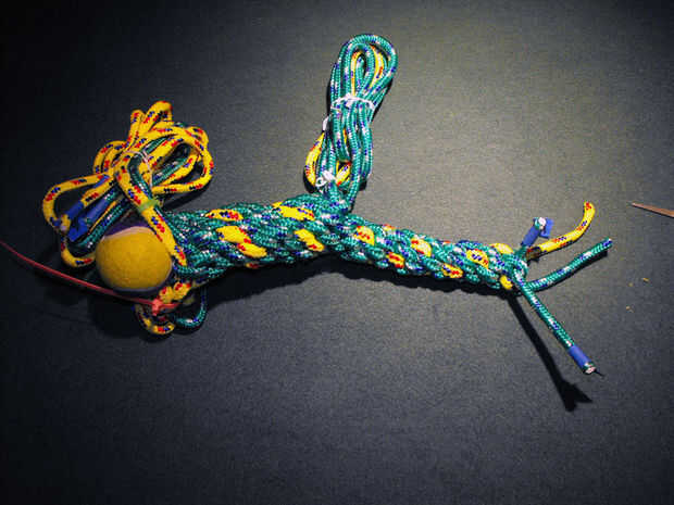 estos fácil de hacer juguetes de cuerda de colores es ideal para cualquier perro de tamaño. Sólo la escala hacia arriba o abajo el diámetro de la cuerda a su perro, 1/4" para perros pequeños o 3/8" para perros grandes. Las instrucciones dadas so