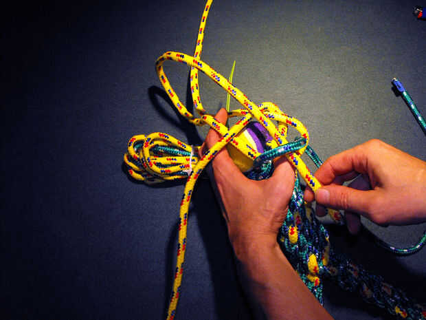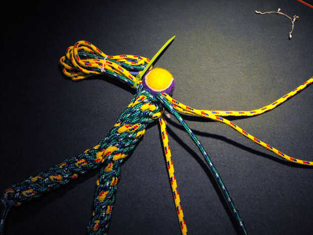 1. Deshacer un grupo de 4 cuerdas en pelota de tenis (esto se convertirá en un brazo)