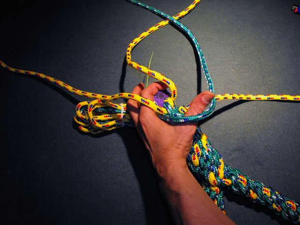3. Luego con cuerda 2 º ir sobre la 1ª cuerda y la cuerda 3 sobre