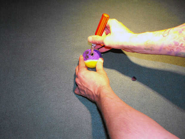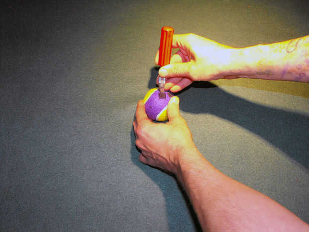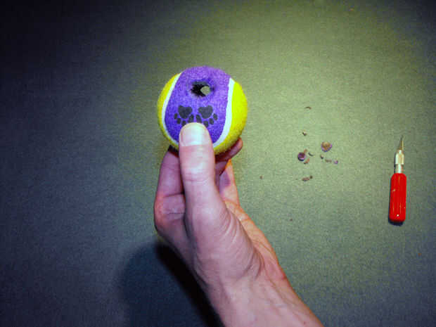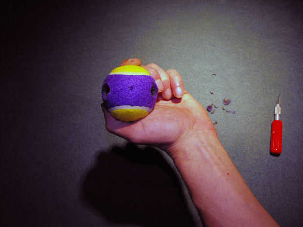 5. Utilizar el cuchillo para cortar círculos en la pelota de tenis