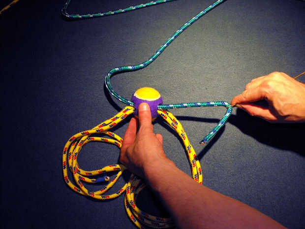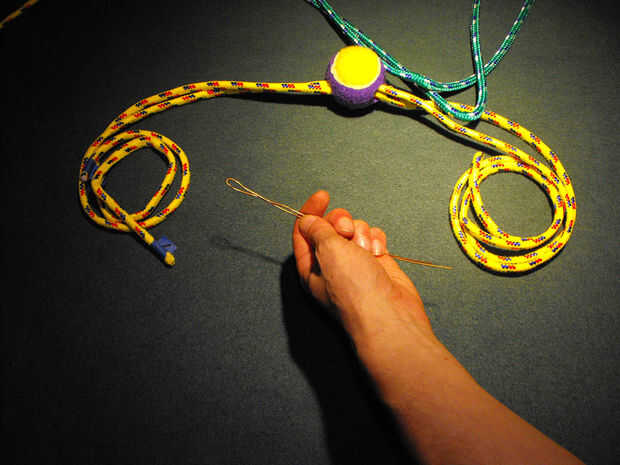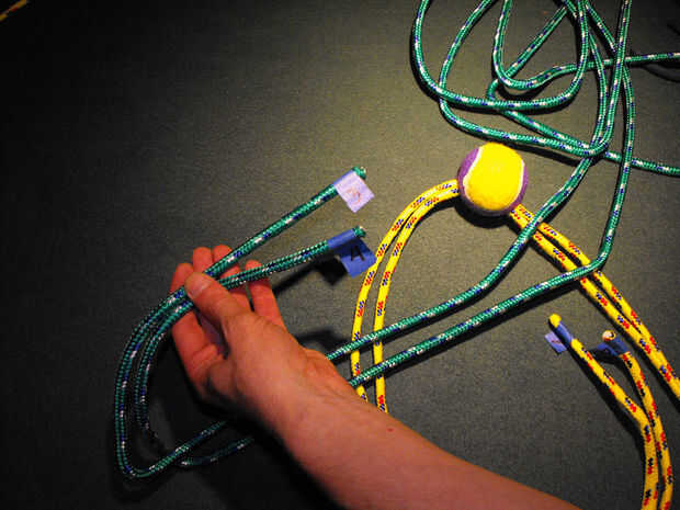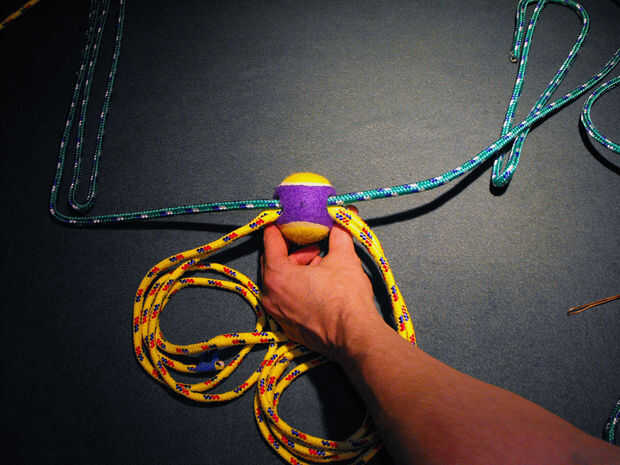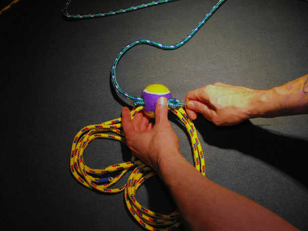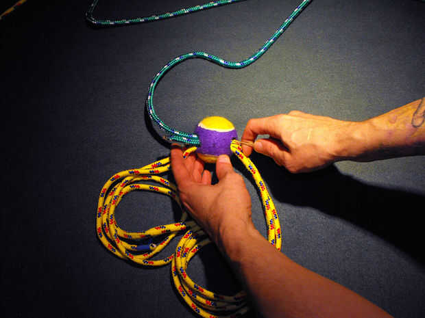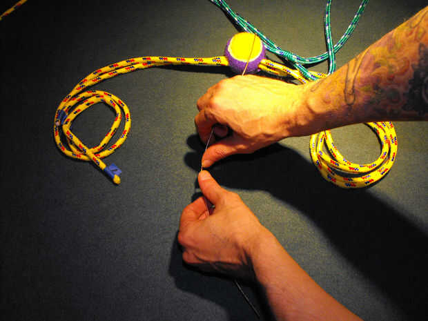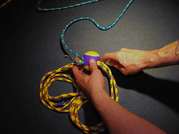Paso 4: Utilice el cable para alimentación de cuerdas adicionales a través de la pelota de tenis