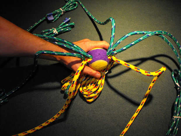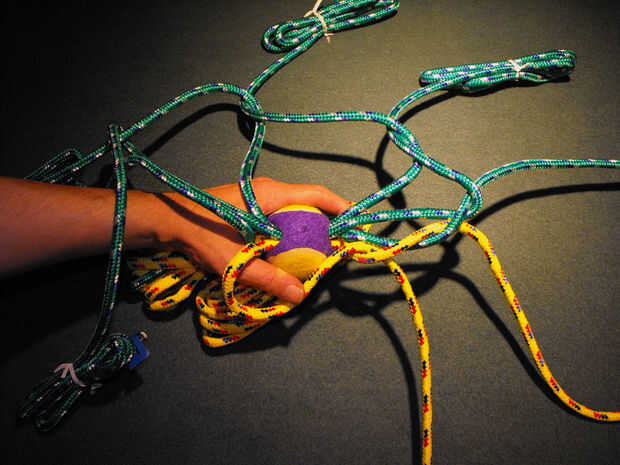 estos fácil de hacer juguetes de cuerda de colores es ideal para cualquier perro de tamaño. Sólo la escala hacia arriba o abajo el diámetro de la cuerda a su perro, 1/4" para perros pequeños o 3/8" para perros grandes. Las instrucciones dadas so