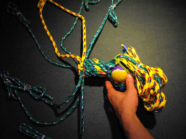 estos fácil de hacer juguetes de cuerda de colores es ideal para cualquier perro de tamaño. Sólo la escala hacia arriba o abajo el diámetro de la cuerda a su perro, 1/4" para perros pequeños o 3/8" para perros grandes. Las instrucciones dadas so