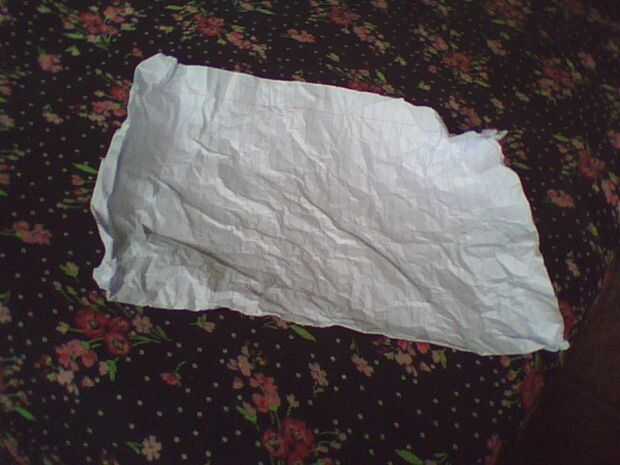 Ahora abrir la bola de desecho de papel y hacia el otro lado y chatarra o presione otra vez para una bola. Hacer esto una y otra vez unas 10 veces o hasta que el papel llega a ser áspero y muy suave. Pero en nuestro caso, el documento fue impreso con una vieja impresora de inyección de tinta con el logotipo del producto y el nombre y luego terminado en una bola.