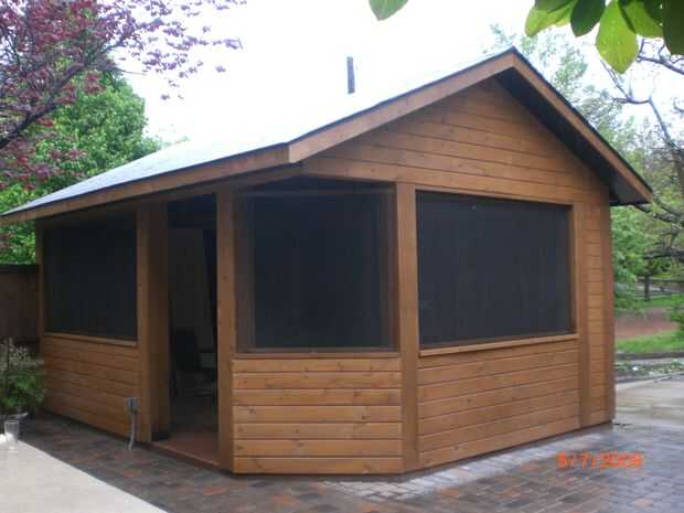 Poner el revestimiento en, hace las pantallas, agregó la madera para el techo, papel alquitranado y tejas. Contraté a un electricista para hacer la electricidad.