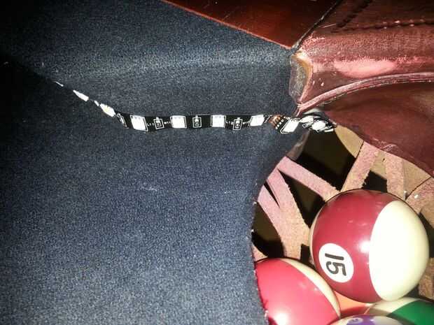 Las tiras de LED tienen una parte posterior pegajosa. No es muy pegajosa o muy fuerte, pero es suficiente colocar bajo los rieles de la mesa de billar y no estropear su fieltro.